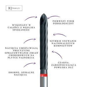 Podiatrický nůž Finir od společnosti Famous Podiatrist s jemnými spirálovými řezy a speciálním úhlem řezů umožňuje odstranění obou podiatrických kompozitů.