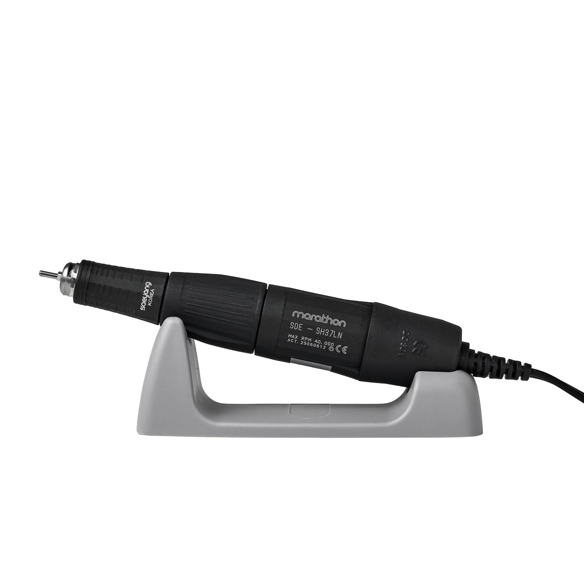 The functional, precise SH37LN handpiece fits perfectly in the hand, guaranteeing high comfort of work. It reaches a maximum speed of up to 40,000 revolutions per minute, making it easy to use. It is equipped with an easy-to-use Twist-Lock system, which allows for quick drill bit changes. Thanks to this, work becomes extremely easy and intuitive, which will also be appreciated by more demanding users. Pen is properly balanced and ergonomically profiled, and its vibrations have been reduced, which means that even long hours of work with the nail drill do not tire the hand excessively. The plastic casing restricts heat transfer so that the heating of the device is not noticeable. The flexible spring cable provides high comfort of work, reaching up to 135 cm in length with significant stretching.
