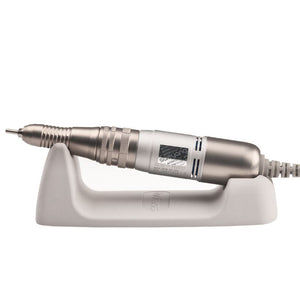 Dodávané příslušenství zajišťuje bezpečnost a pohodlí při používání. Bruska na nehty je vybavena nožním pohonem, který umožňuje přesné ovládání hlavy a volnou, pohodlnou práci díky možnosti ovládání bez použití rukou. Při práci lze hlavu bezpečně odložit na přiložený speciální silikonový stojan nebo ji zavěsit díky praktické plastové rukojeti, kterou lze namontovat na obě strany přístroje. Štěrbina pro frézu na krytu umožňuje připravit si potřebné nástroje, abyste je měli při práci po ruce.