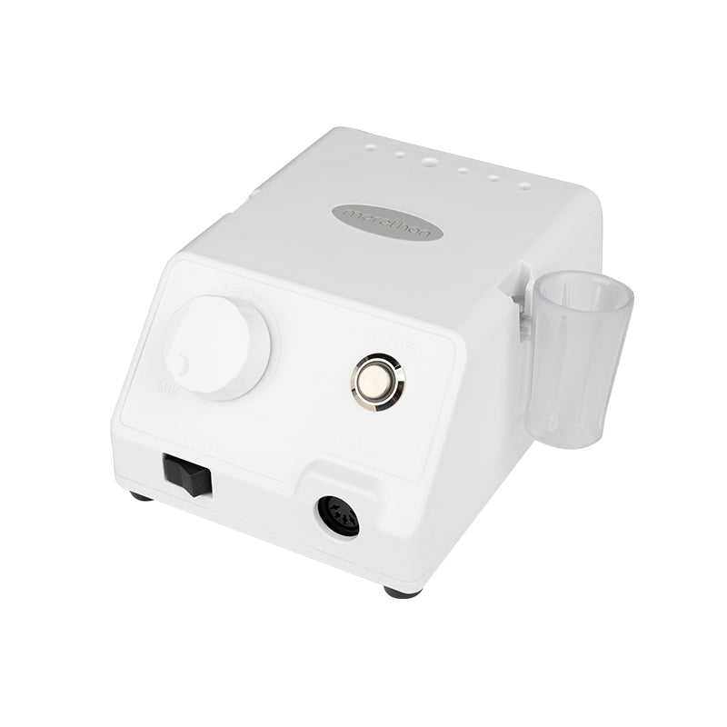 The Marathon Escort III nail drill machine is the latest version after the previously known version of Escort Pro II. It is characterized by the latest technological applications and the unique H200 handpiece. You can expect quiet operation and no disturbing vibrations. The speed mechanism is controlled by a knob, and the number of revolutions per minute is from 0 to 30 thousand. The system is automatically protected against overload.