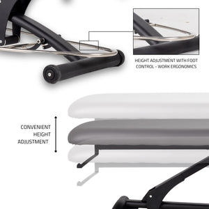 height adjustment of the tabletop using a control frame made of stainless steel