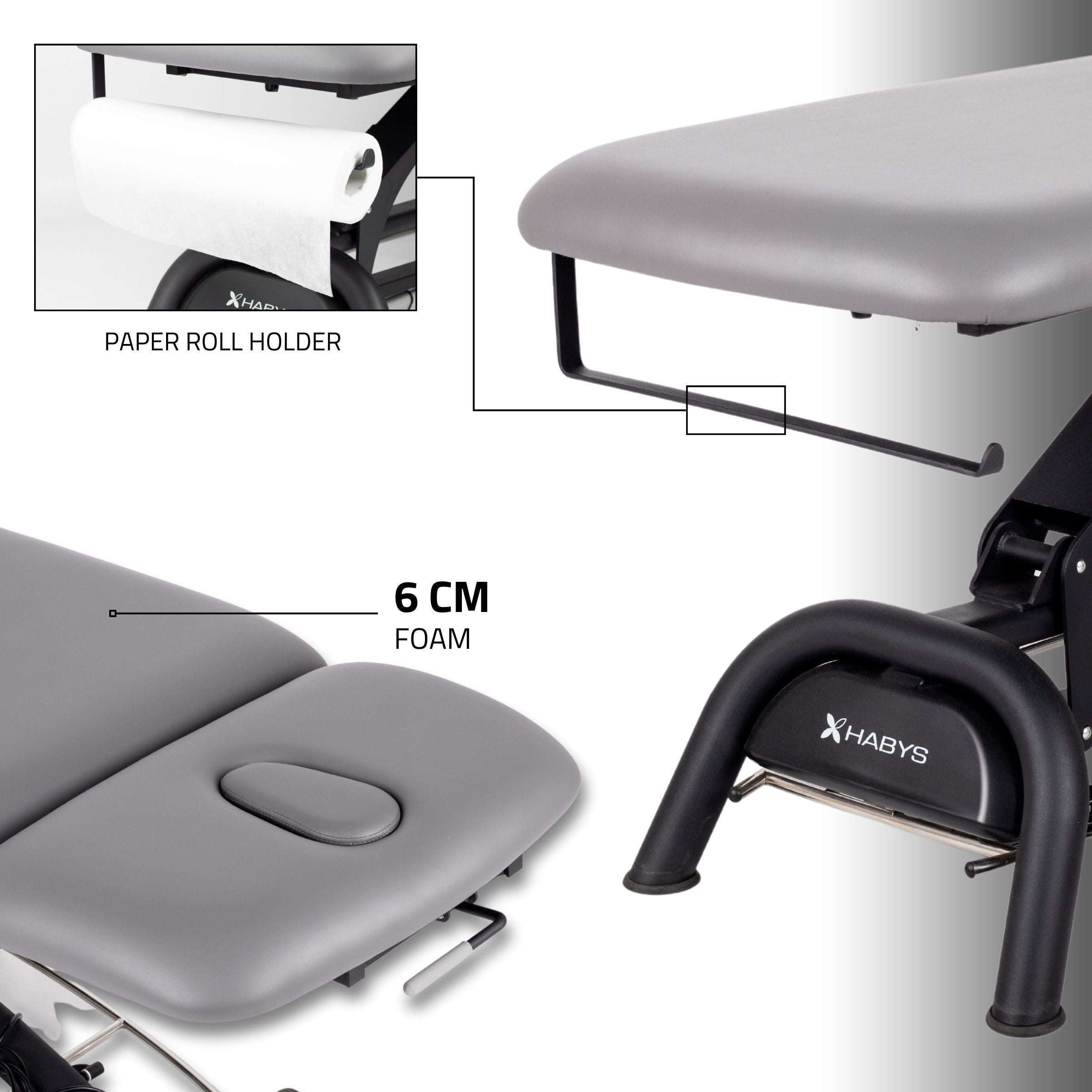 Solid and durable upholstery, resembling natural leather to the touch. Made of PVC material. Resistant to dirt, oils and disinfectants. The upholstery color retains its intensity for many years. Tested - meets Habys quality criteria.
