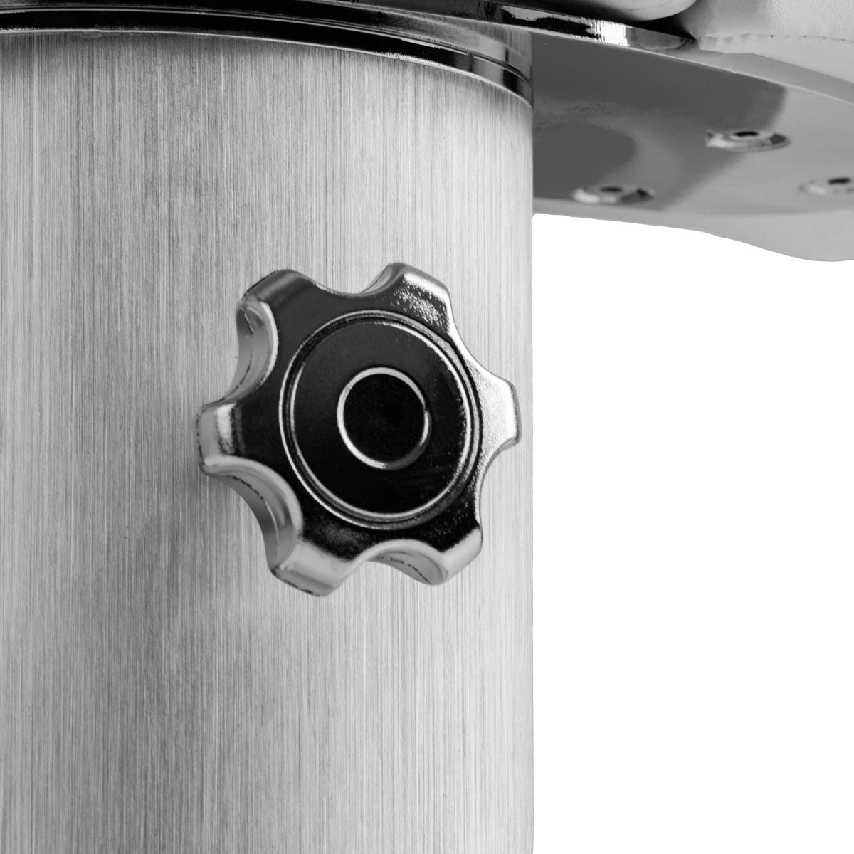 The adjustable trolley with footrest allows positioning to be adapted to the needs of both the client and the practitioner. Manual height adjustment up to 20 cm, moisture-resistant synthetic leather upholstery, and stable rubber wheels with locks ensure comfort, mobility, and good workstation organization.