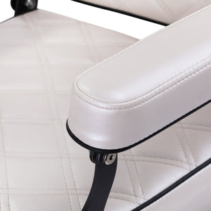 The solid base ensures stability and high comfort of use. The seat filling made of deformation-resistant foam and upholstery made of pleasant-to-touch synthetic leather with a pearl finish ensure durability and comfortable use for a long time. These materials are moisture-resistant, durable, and easy to clean. The cream shade of the upholstery gives the armchair a unique character, and its elegant style blends perfectly with barbershop decor.