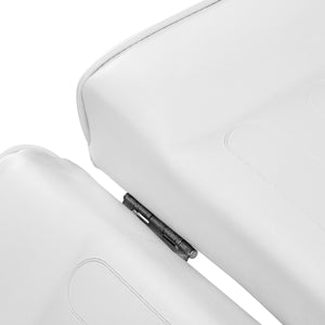 The chair is filled with foam of appropriate firmness and covered in white-toned synthetic leather. The material is distinguished by its moisture resistance and ease of cleaning, which helps maintain a high standard of hygiene. Profiled stitching gives the seat an ergonomic shape, whilst the sturdy construction ensures stability and durability. Its minimalist form and light colour scheme mean the model fits harmoniously into both modern and classic beauty and SPA interiors.
