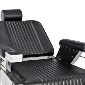 As grooming practices evolve, so does our product range. Introducing our latest addition - the Royal Black Barber Chair. Crafted with precision and modern aesthetics, our barber chair ensures maximum comfort for salon clients during treatments. With its up-down adjustment feature, reclining backrest, and adjustable footrest, clients can relax in a comfortable reclined position. The plush seat, covered in high-quality eco-leather, adds a touch of luxury to every experience.
