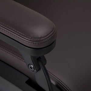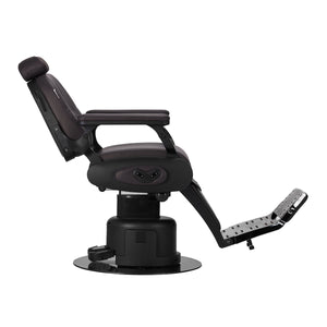 The electric control system guarantees wide adjustment possibilities. It allows for precise adjustment of the seat height in the range of 58-72 cm and almost full rotation, which gives barbers significant freedom of movement, even in smaller spaces. It is controlled both by buttons located on the side of the chair and by foot control, which gives additional flexibility during work. The backrest and footrest are also raised electrically, which allows for quick and smooth adjustment of the client's position to the treatment being performed.
