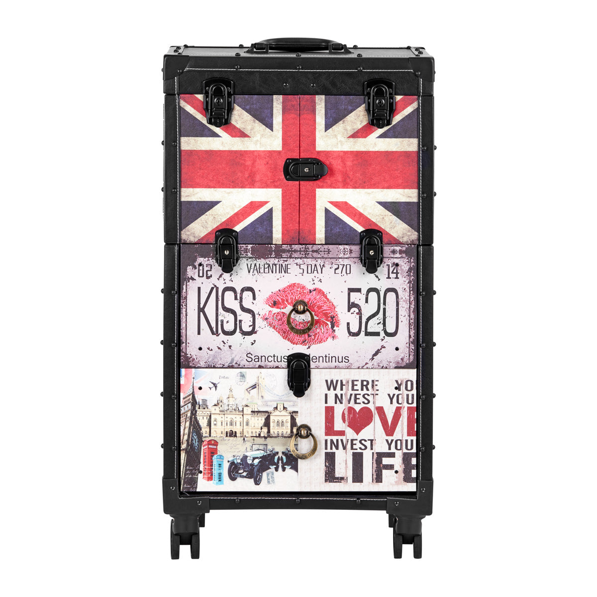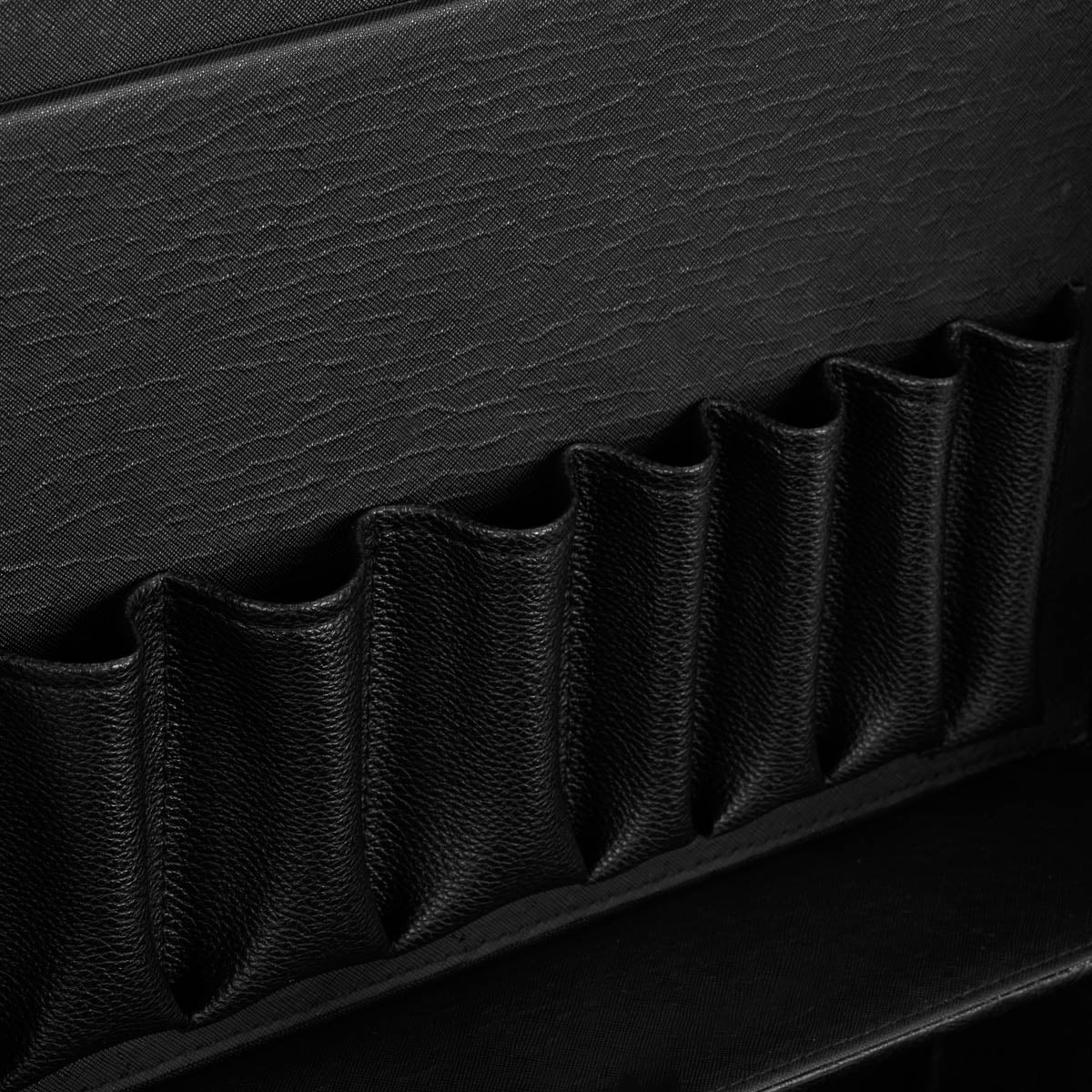 The characteristic style of the Gabbiano C12 helper is a the perfect solution for barbershops that appreciate the unique look and elegant details. The fronts of the cabinets are decorated with stylized British patterns, which will certainly emphasize the atmosphere of the interior. The material imitating leather in shades of black and metal elements add elegance, masculine character and a luxurious look to the furniture. This helper will be a great choice for people who appreciate both interesting design and functionality.