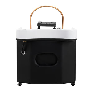 The device catches the eye with its modern form and contrasting color combination - elegant white with deep black. The minimalist body with rounded edges looks stylish and professional, fitting perfectly into the decor of modern beauty salons and SPA parlors. The washer is equipped with lockable wheels, which ensures convenient transport and stability during use. It is an ideal solution for smaller spaces – one mobile device can serve several treatment stations, making it an extremely functional and economical choice.