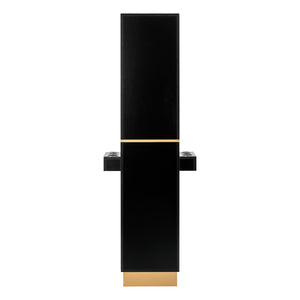 The Gabbiano Totem hairdressing station is a functional piece of equipment designed with ergonomics and a tidy, organised workspace in mind. The model emphasises the professional character of the interior and supports the efficient organisation of the workspace. The minimalist form, finished in shades of black and accented with gold details, gives the unit an elegant and luxurious look that fits perfectly into modern hairdressing salon and barbershop interiors.