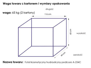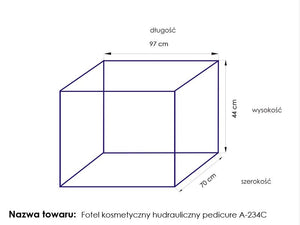 swivel chair with a blockade, with divided footrests, hydraulically lifted and lowered, with a hole in the headrest, perfect for cosmetics, pedicure treatments, make-up and massage. it has removable armrests and a plug in the headrest. Easily washable seat cover, made of eco-leather, meeting the stringent EU requirements, aesthetic, nickel-plated metal elements. the armchair is available in white.