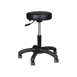 comfortable cosmetic stool, stable on a five-star base, with rubberized wheels. necessary piece of furniture in a beauty salon.