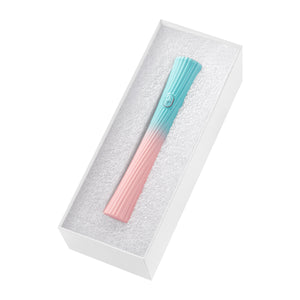 The slim, elongated form with ergonomic proportions and a decorative, grooved surface ensures a secure grip and a modern look. The delicate colour transition in shades of turquoise and pastel pink gives the device a lightness.