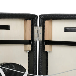 The Estetic Black portable cosmetic table is a two-section model that perfectly fits any beauty salon, massage studio, spa, or tattoo parlor.