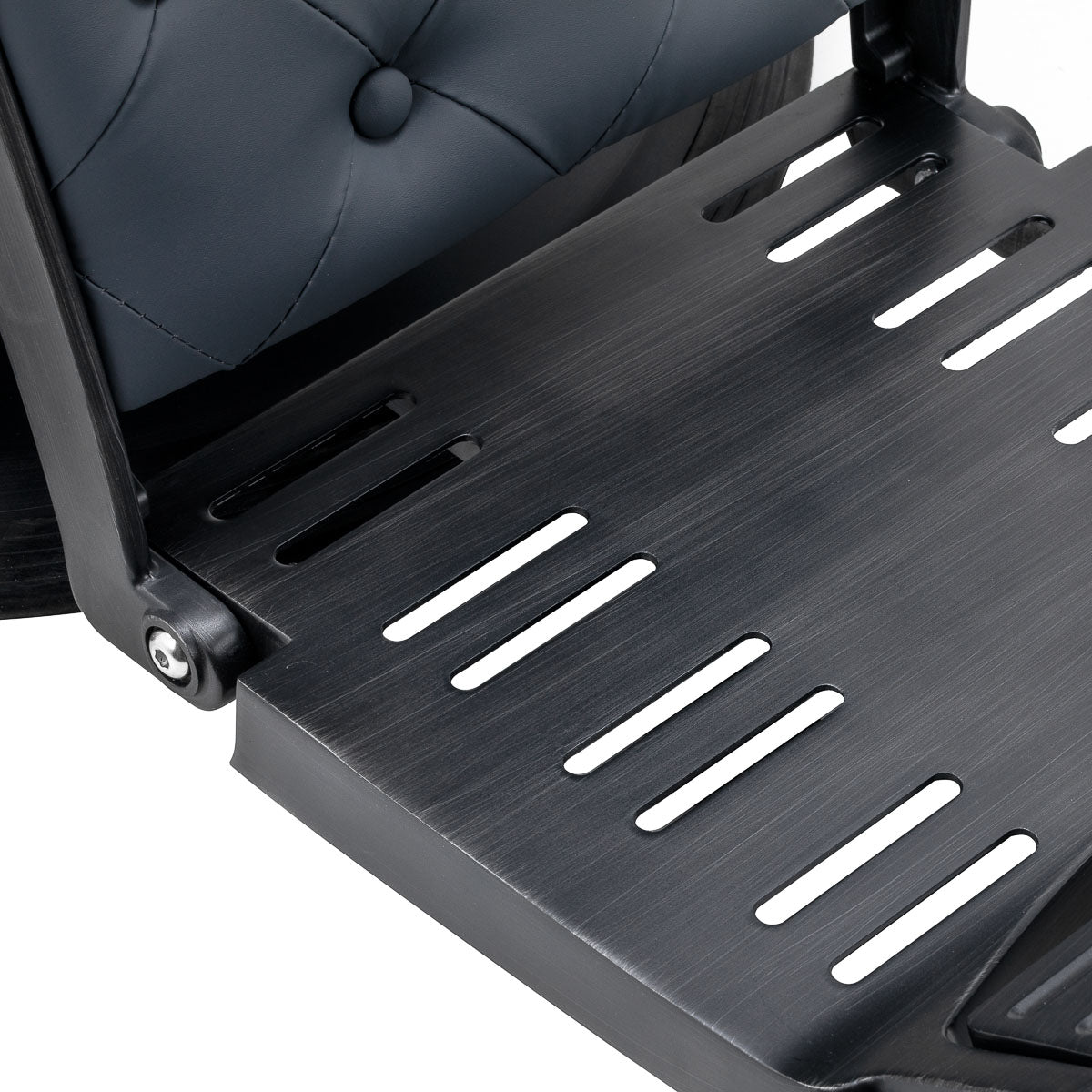 Robustní designzákladny s prvky v černých tónech zajišťuje vysokou úroveň pohodlí. Výplň z odolné pěny odolné proti deformaci a čalounění z na dotek příjemné syntetické kůže s perleťovou povrchovou úpravou zajišťují odolnost nábytku a jeho pohodlné používání po dlouhou dobu. Díky nim je zařízení také odolné proti vlhkosti, trvanlivé a snadno se čistí. Potah v odstínech grafitové barvy spolu s originálním prošíváním a ozdobnými knoflíky mu dodávají jedinečný charakter. Designové dekorativní prvky inspirované motocykly, odkazující na vintage styl, dokonale zapadnou do prostředí holičství a vytvoří jejich úžasnou atmosféru.