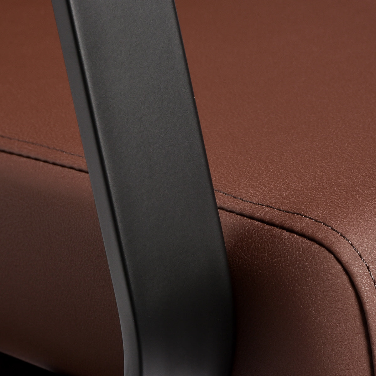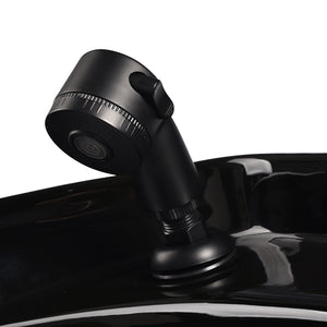 Profilované křeslo poskytuje správnou bederní oporu, a tím i vysoký komfort používání. Kovové područky v odstínech černé barvy s geometrickým tvarem umožňují správné polohování ramen klienta. Výplň z odolné pěny odolné proti deformaci a čalounění z na dotek příjemné syntetické kůže v odstínech hnědé zajišťují odolnost nábytku, snadné čištění a pohodlné používání po dlouhou dobu. Originální, elegantní design myčky dodává interiérům jedinečný nádech. Součástí balení je kompletní příslušenství v odstínech černé barvy, včetně baterie, sprchové hlavice a vyhrazených hadic, které vám poskytnou kompletní sadu nástrojů pro vaši práci.
