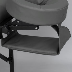 The unique tabletop construction deserves special attention, completely devoid of wooden elements, which contributes to the table's lighter weight. This makes the Luna Light massage table comfortable to carry and transport. It is perfect for mobile massage services with client visits. The U-shaped profile of the aluminum legs ensures high stability and facilitates access to the patient. The Luna Light massage table has quick and easy height adjustment thanks to the special leg profile. The table is refined in every detail.
