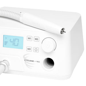 Špičkový podiatrický bruska na nehty Saeyang Marathon Cyclone-Vac s absorbérem je specializované zařízení, které umožňuje udržovat vysoké hygienické standardy v salonu a účinně chránit zdraví lékařů i klientů. Profesionální bruska na nehty je určena pro pedikúru, zejména suché ošetření prováděné v podiatrii, ale osvědčí se i při manikúře. Výkonná absorpční hlava a intuitivní ovládání výrazně zlepšují práci podiatra a usnadňují širokou škálu ošetření.