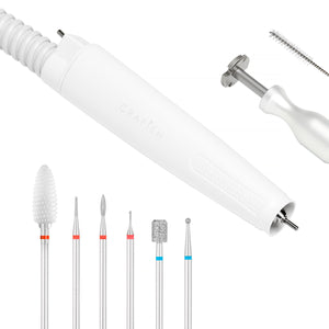Praktické příslušenství obsažené v sadě účinně usnadňuje práci. Přesná hlavice s absorbérem a náhradní filtrační sáčky zajišťují bezpečné používání a chrání před vdechnutím škodlivých patogenů. Součástí je také sada fréz, která vám umožní pohodlně provádět různá ošetření pedikúry, a stojan ze speciálního plastu pro snadné čištění. Díky různým tvarům, materiálům a stupňům fréz je možné zvolit ten správný nástroj pro prováděnou službu a ošetřovanou oblast. Přiložené nástroje na čištění hlavice a vyjmutí fréz zajišťují snadnou údržbu přístroje a usnadňují jeho používání.