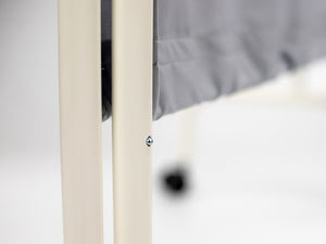 Screen made of steel coated with durable white powder lacquer. Special wheels with brakes allow for easy movement and stabilization, even on slippery surfaces. The attractive colors of the screens ensure that, in addition to functionality, the screens emphasize the modern character of the interiors. The white color of the screen's construction perfectly corresponds with the Evero collection of stationary massage tables.